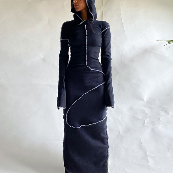 This Street Fashion Bodycon Dress is the perfect combination of style and comfort. The sleek silhouette and reverse seams create a modern look that is sure to turn heads. The hooded design adds an extra layer of warmth and protection from the elements.