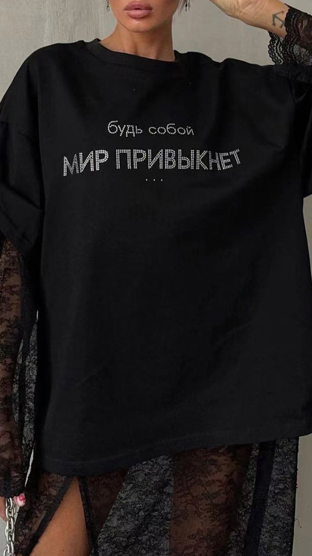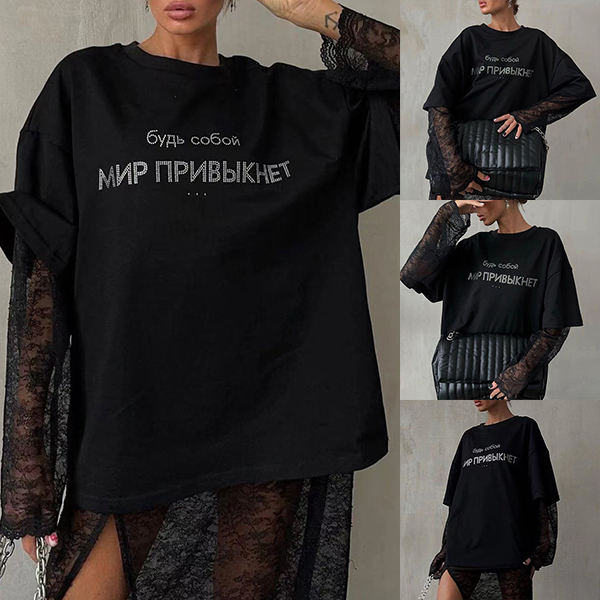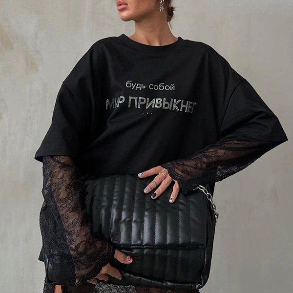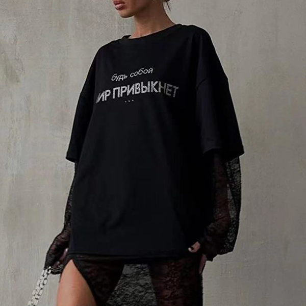 Street Fashion Rhinestone Letter Short Sleeve Shirt