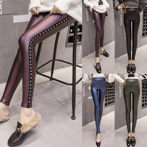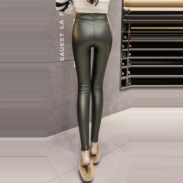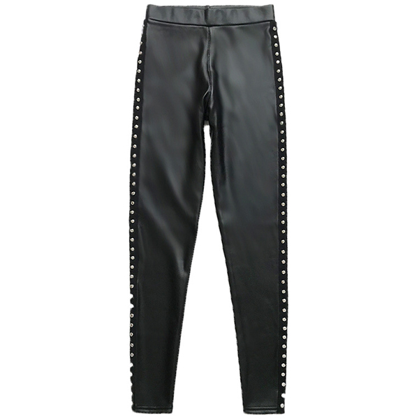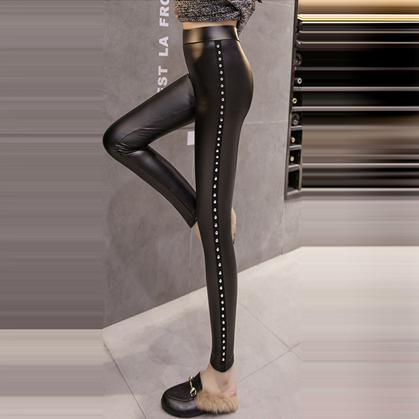 Street Fashion Rivet Plush Lined High-rise Artificial Leather PU Skinny Leggings
