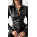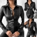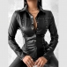 Street Fashion Rivet Stand Collar Long Sleeve Artificial Leather PU Blouse