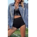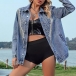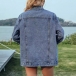 This edgy jacket features a stand collar and long sleeves for a sleek and modern look. The rivet detailing adds a touch of attitude and personality to the classic denim design. Pair it with jeans and a t-shirt for a casual and cool look, or layer it over a dress for a more trendy and fashion-forward ensemble.
