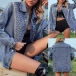Street Fashion Rivet Stand Collar Long Sleeve Denim Jacket