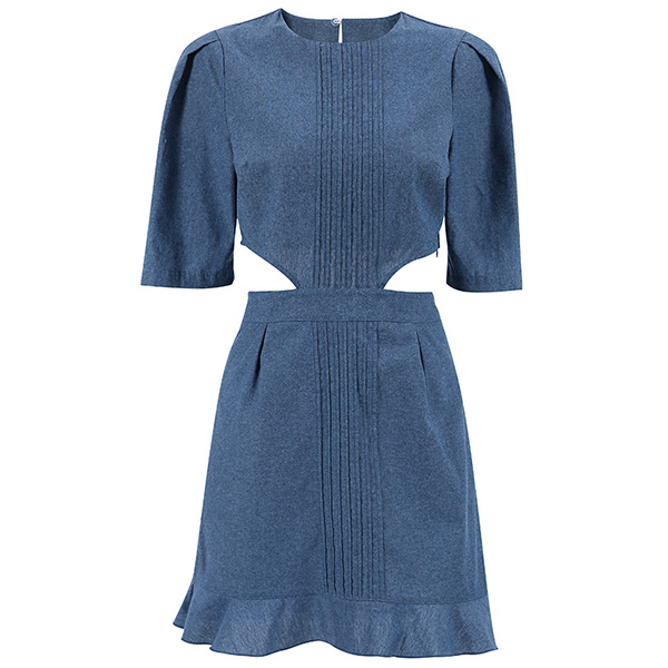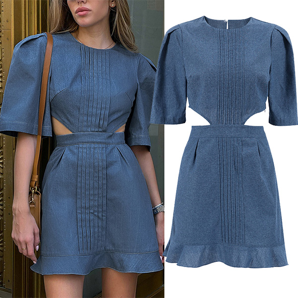 This denim dress exudes a trendy, street-style vibe with its unique design elements. It features a round neckline, puff short sleeves and the side cutout details adds eye-catching visual interest. The denim fabrication lends a rugged, casual-cool aesthetic that can be easily dressed up or down. Wanna have a try?
