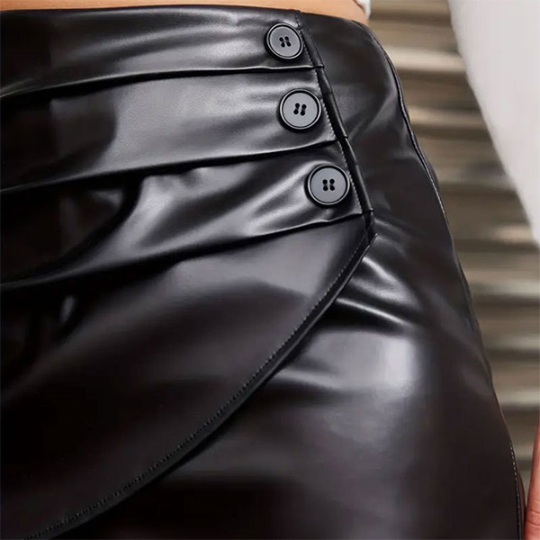 Street Fashion Ruched Button Artificial Leather PU Skorts