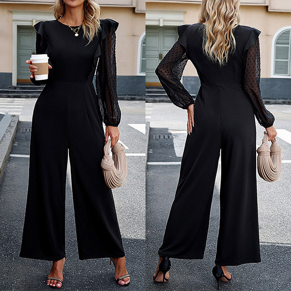Look at this jumpsuit! The ruffled shoulder with lace spliced long sleeve design adds a touch of romance and elegance, creating a unique and eye-catching element. Wanna have one?