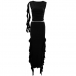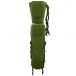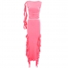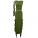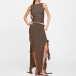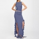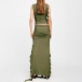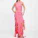 For a bold and fashion look, you could try this two-piece set! The sleeveless crop top offers a modern and chic look, perfect for warm weather. The skirt features a high slit with ruffled details, giving it a flirtatious and stylish edge. The ruffled details add a touch of playfulness and movement to the outfit.