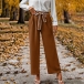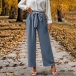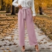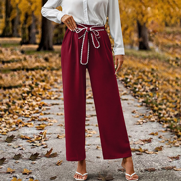These pants feature a straight cut that effortlessly flatters your figure and gives a polished, sleek appearance. The self-tie bowknot detail adds a playful and feminine touch, wanna have a try?