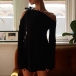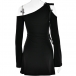 This dress combines trendy street fashion with a flirty and chic style. The one-shoulder design adds a modern and asymmetric touch, while the long sleeves provide coverage and a touch of sophistication. Its mini length creates a youthful and fun look, perfect for a night out or a fashionable statement.