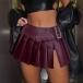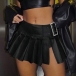 Street Fashion Side Buckle Slit Pleated Mini Skirt