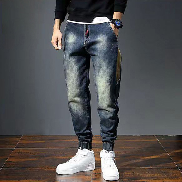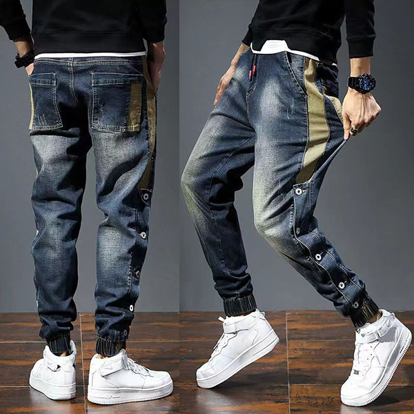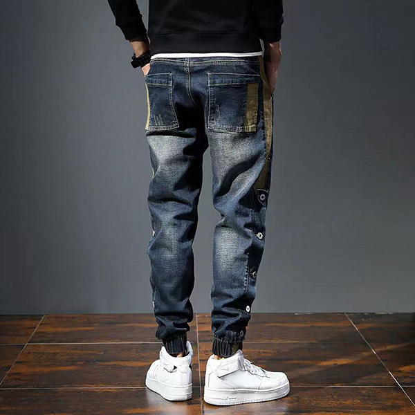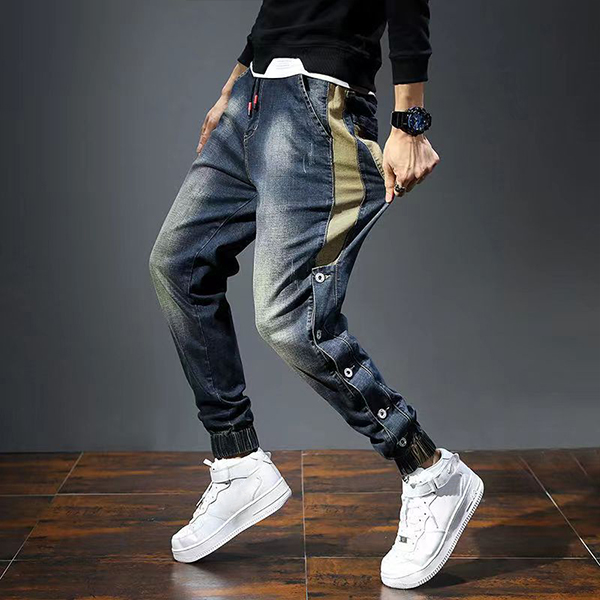 Street Fashion Side Button Old-washed Denim Jeans for Men