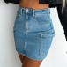 Street Fashion Side Patch Pockets Denim Skirt