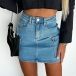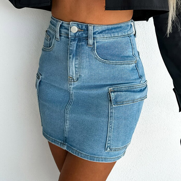 This denim skirt is designed with a modern twist on a classic silhouette. The side patch pockets add a unique and edgy element to the skirt, giving it a streetwear-inspired look. It can be paired with a variety of tops, from t-shirts and tank tops to sweaters and blouses, making it a versatile piece that can be dressed up or down depending on the occasion.