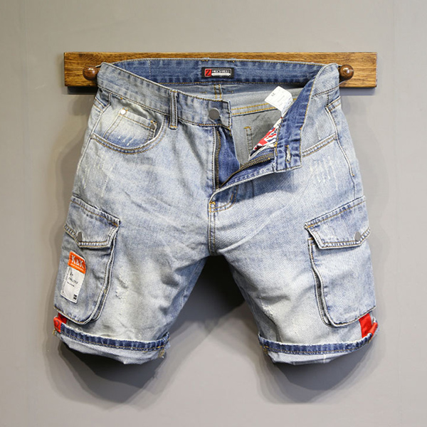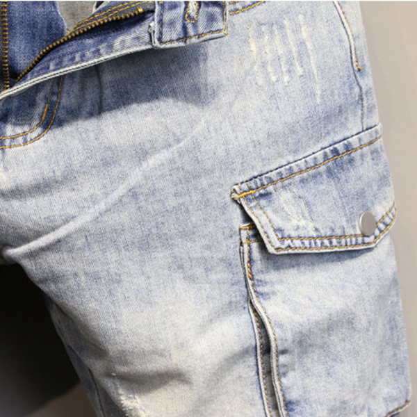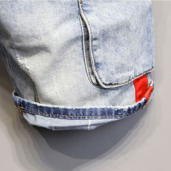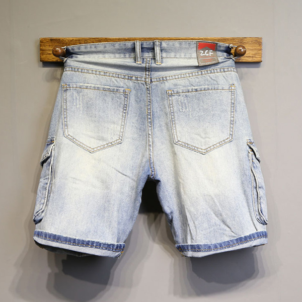 Street Fashion Side Patch Pockets Old-washed Denim Shorts for Men