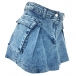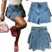 Street Fashion Side Patch Pockets Ruffle Old-washed Denim Mini Skirt