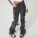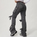 Street Fashion Side Patch Pockets Self-tie Bowknot Wide-leg Old-washed Denim Jeans
