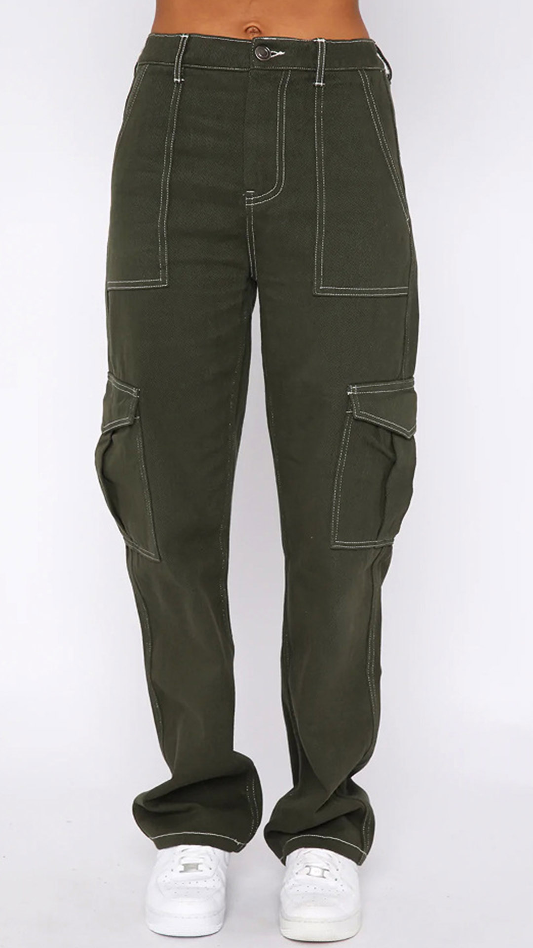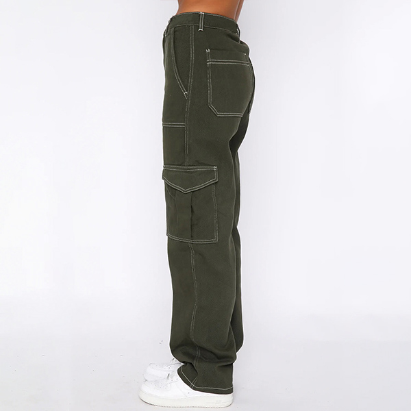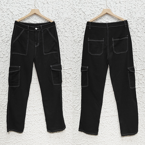 These trendy pants feature a straight-cut silhouette, functional side patch pockets, and a utilitarian-inspired design, perfect for adding a touch of urban edge to your wardrobe.