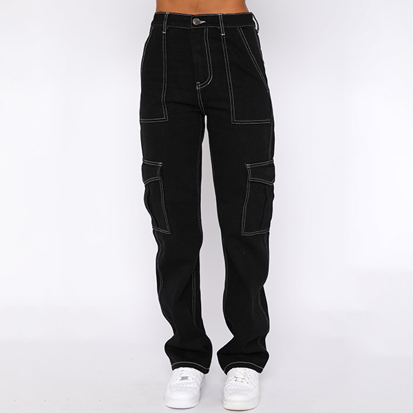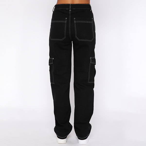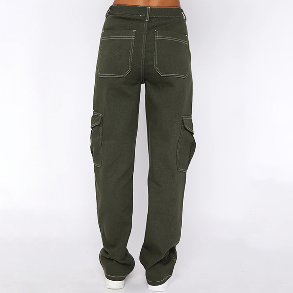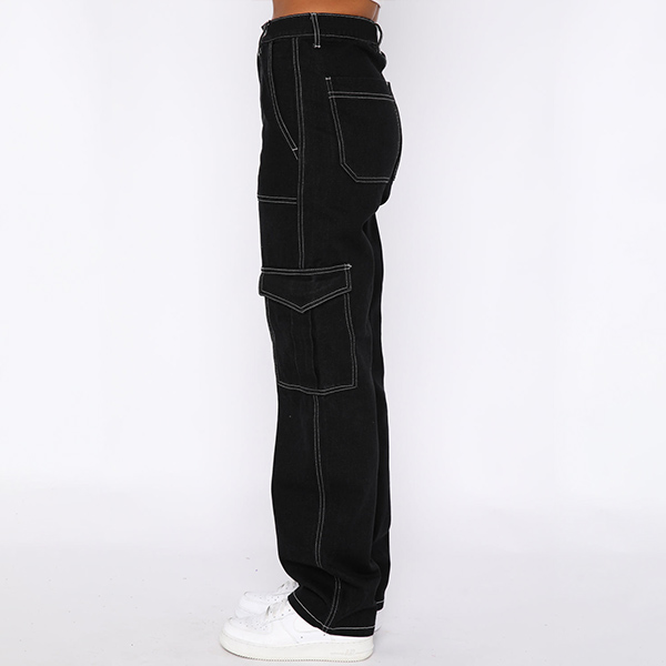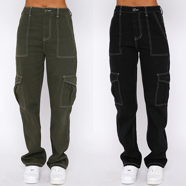 Street Fashion Side Patch Pockets Straight-cut Cargo Pants for Women