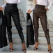 Crafted from high-quality artificial leather PU fabric, these pants offer the sleek look and feel of genuine leather without compromising on comfort. The side patch pockets not only add a stylish element but are also functional, allowing you to carry your essentials with ease. The zipper detailing at the cuff adds an extra edge, giving these pants a unique and rebellious touch. Wear them with your favorite graphic tees or stylish blouses for a head-turning outfit.