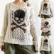 Street Fashion Skull Pattern Hollow Out Knitted Sweater