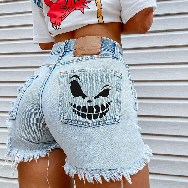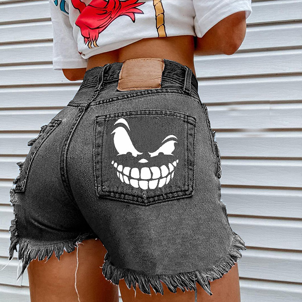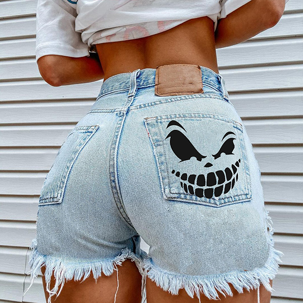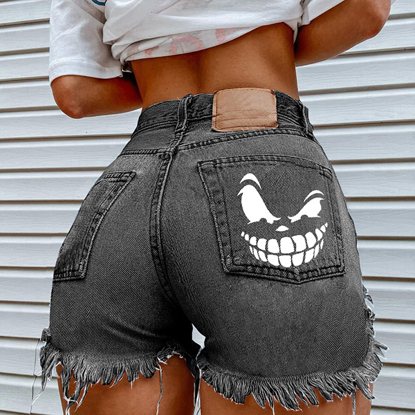 These shorts are the perfect blend of edgy style and casual comfort. Featuring a skull print design, they add a unique and eye-catching element to your outfit. The frayed details give them a distressed look, lending a trendy and lived-in feel. Made from denim, they provide durability and a classic streetwear aesthetic.