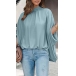 This shirt features a unique halter neck and batwing sleeve design that adds a touch of edginess and sophistication to your outfit.