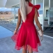 This dress features a beautiful bowknot detail on the shoulder, adding a feminine and romantic touch. The gauze spliced fabric adds a touch of elegance and texture, making it perfect for a party or special occasion.