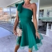 Street Fashion Solid Color Bowknot One Shoulder Gauze Spliced Party Dress