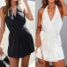 Street Fashion Solid Color Halterneck Backless Pleated Romper