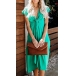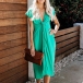 Street Fashion Solid Color Kink-knot V-neck Cap Sleeve Midi Dress