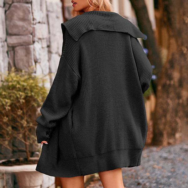 Street Fashion Solid Color Lapel Long Sleeve Cardigan