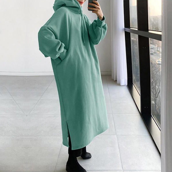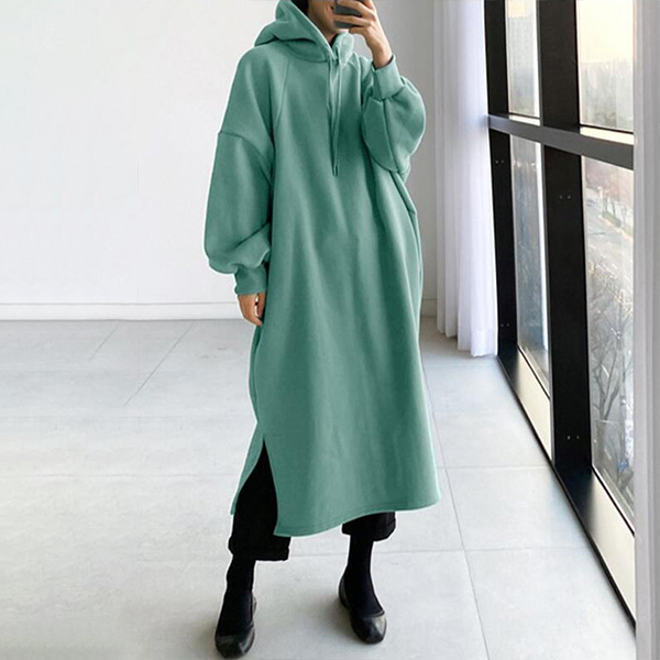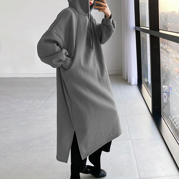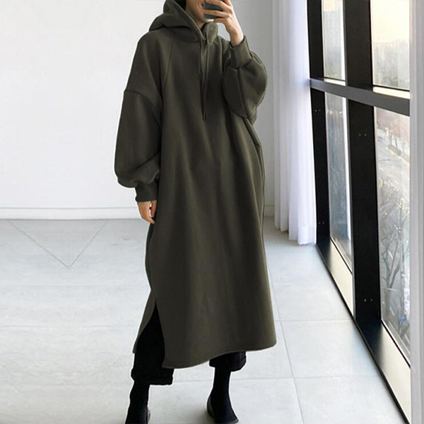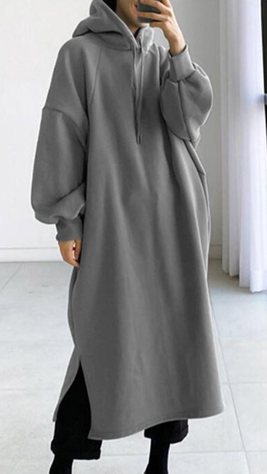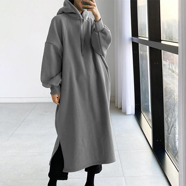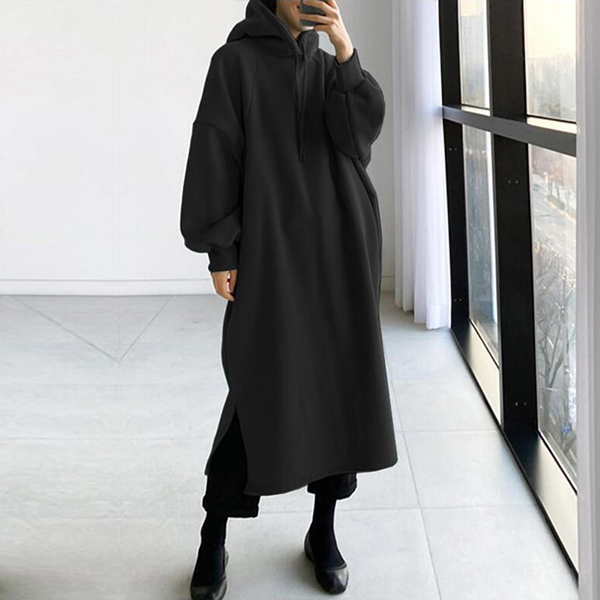 Street Fashion - Sweat-shirt à manches longues avec unicolore, cordon de serrage, capuche et fente Longline