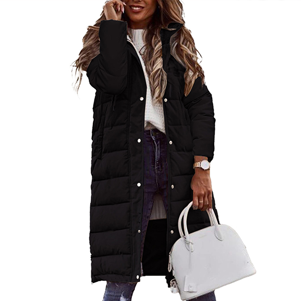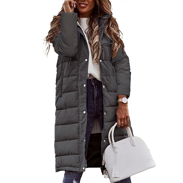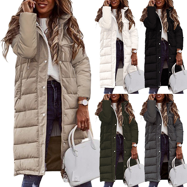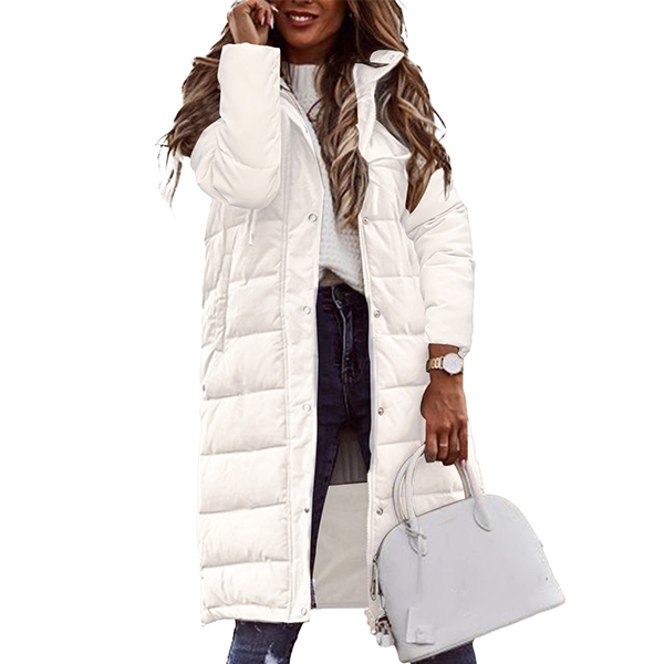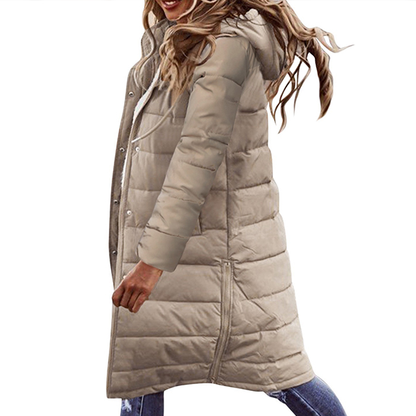 Street Fashion Solid Color Long Sleeve Hooded Quilted Longline Jacket