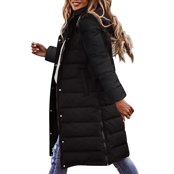 This jacket is the perfect combination of street style and fashion-forward design. The solid color adds a sleek and versatile touch, making it easy to pair with any outfit. The longline silhouette adds a trendy and modern element, while the quilted pattern provides both style and extra warmth. Made with high-quality materials, it ensures both comfort and durability.