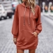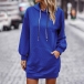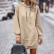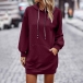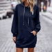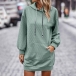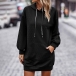 Street Fashion Solid Color Long Sleeve Kangaroo Pocket Drawstring Hooded Dress