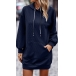 This dress features a solid color design, making it easy to pair with different accessories. The kangaroo pocket adds a laid-back and casual touch, while the drawstring hood adds a sporty and chic element. The dress can be worn on its own or layered with leggings or tights for added versatility.