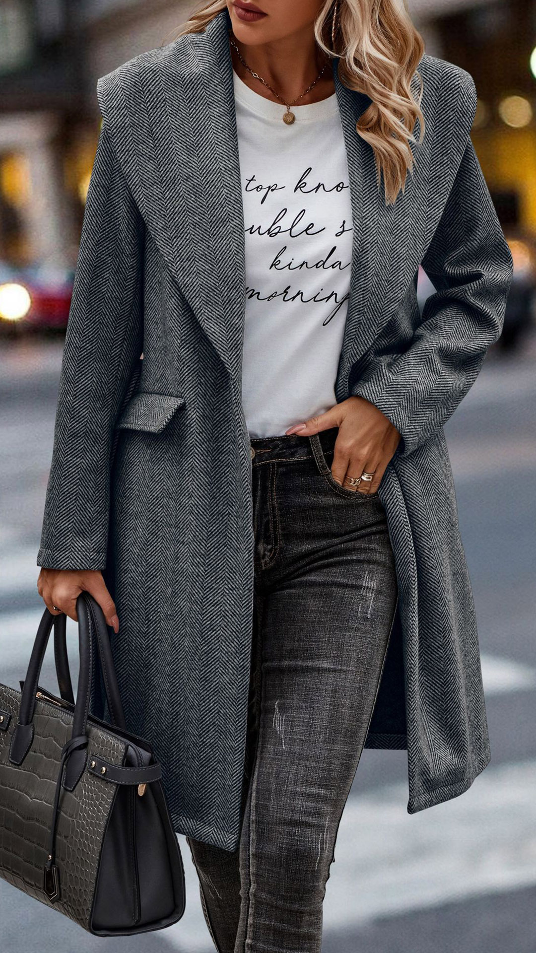 Stay on-trend and fashionable with this longline Jacket. Designed for both comfort and style, this jacket features a solid color that offers a versatile and timeless look. The long sleeves provide coverage while still allowing for easy movement. I like the large lapel design, and you?