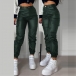 These pants combine edgy style with comfort for a trendy and fashionable look.
