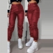 Street Fashion Solid Color Mid-rise Side Patch Pockets Artificial Leather PU Pants