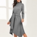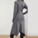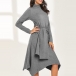 Street Fashion Solid Color Mock Neck Long Sleeve Self-tie Irergular Hemline Dress