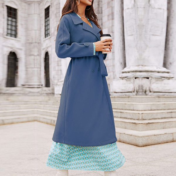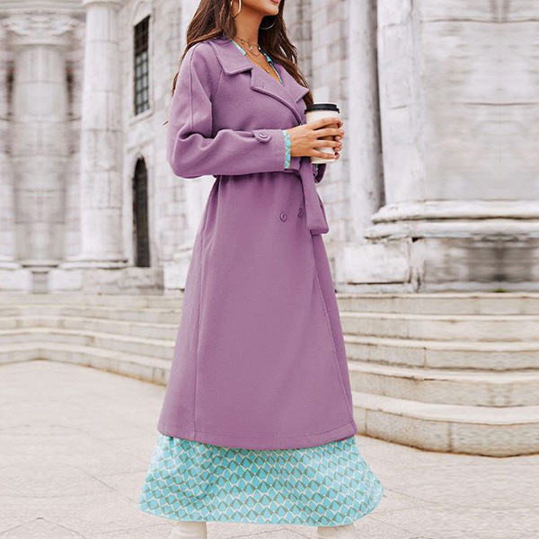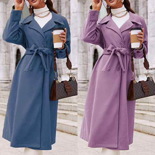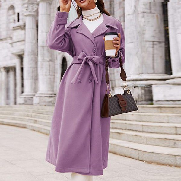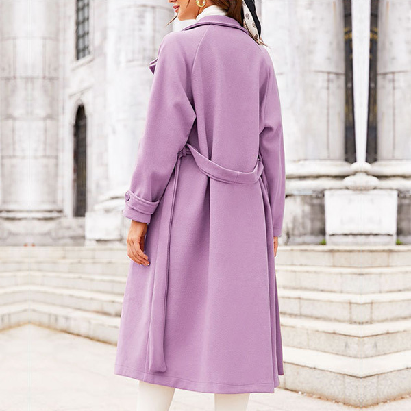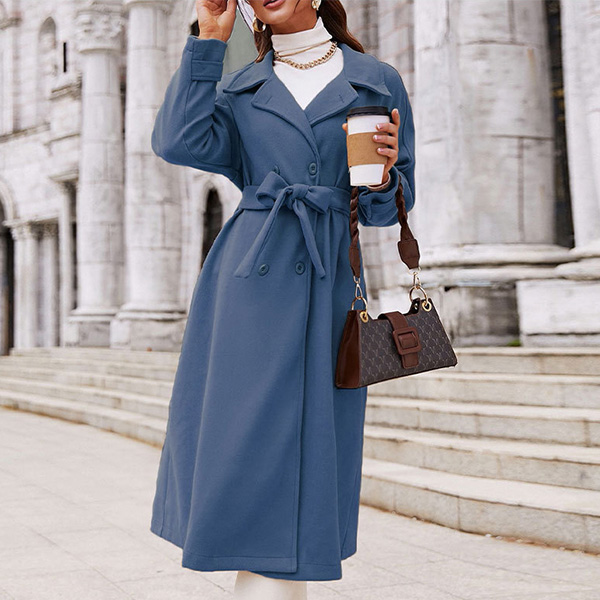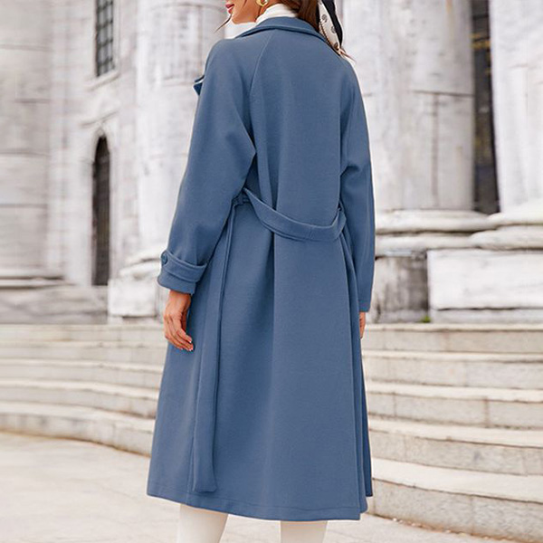 Street Fashion Solid Color Notch Lapel Long Sleeve Double Breasted Self-tie Duffle Jacket