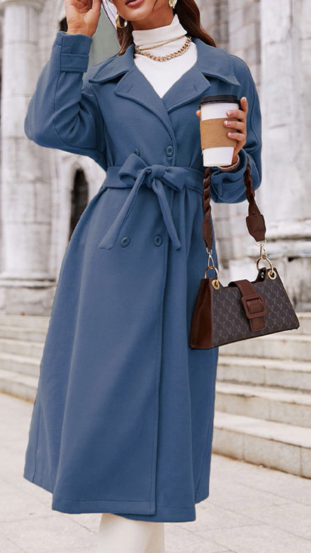 Featuring a solid color design, this jacket is a timeless classic that can be easily paired with various outfits. The notch lapel and double-breasted style add a touch of sophistication and structure to the jacket's silhouette. Wanna have a try?