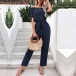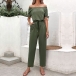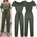 This jumpsuit is the perfect blend of fashion and comfort, making it a must-have for any fashion-forward individual. The off-the-shoulder design adds a touch of femininity and allure, while the short sleeves provide a relaxed and casual vibe.