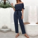 Street Fashion Solid Color Off-the-shoulder Short Sleeve Drawstring Jumpsuit