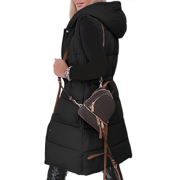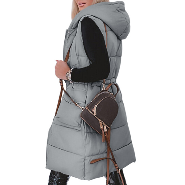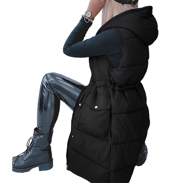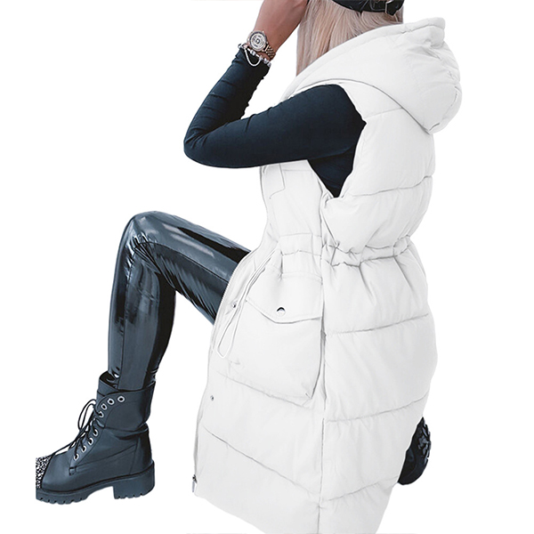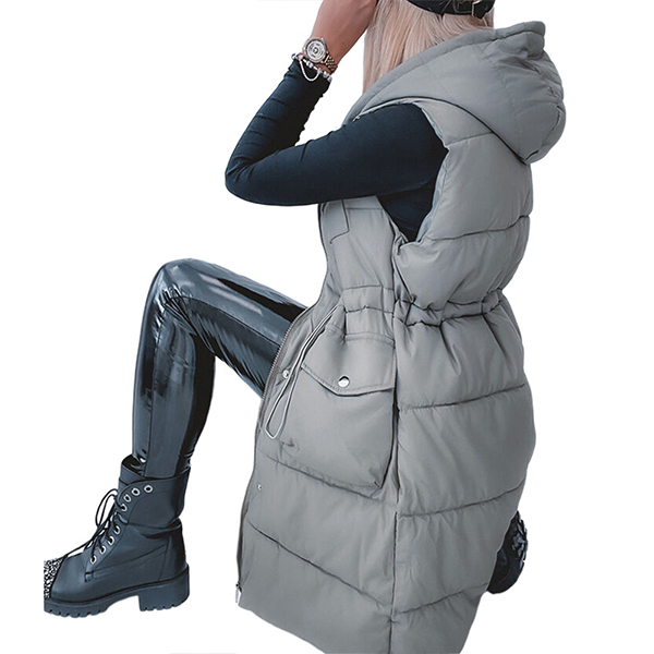 Street Fashion Solid Color Quilted Sleeveless Hoodied Longline Jacket