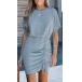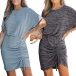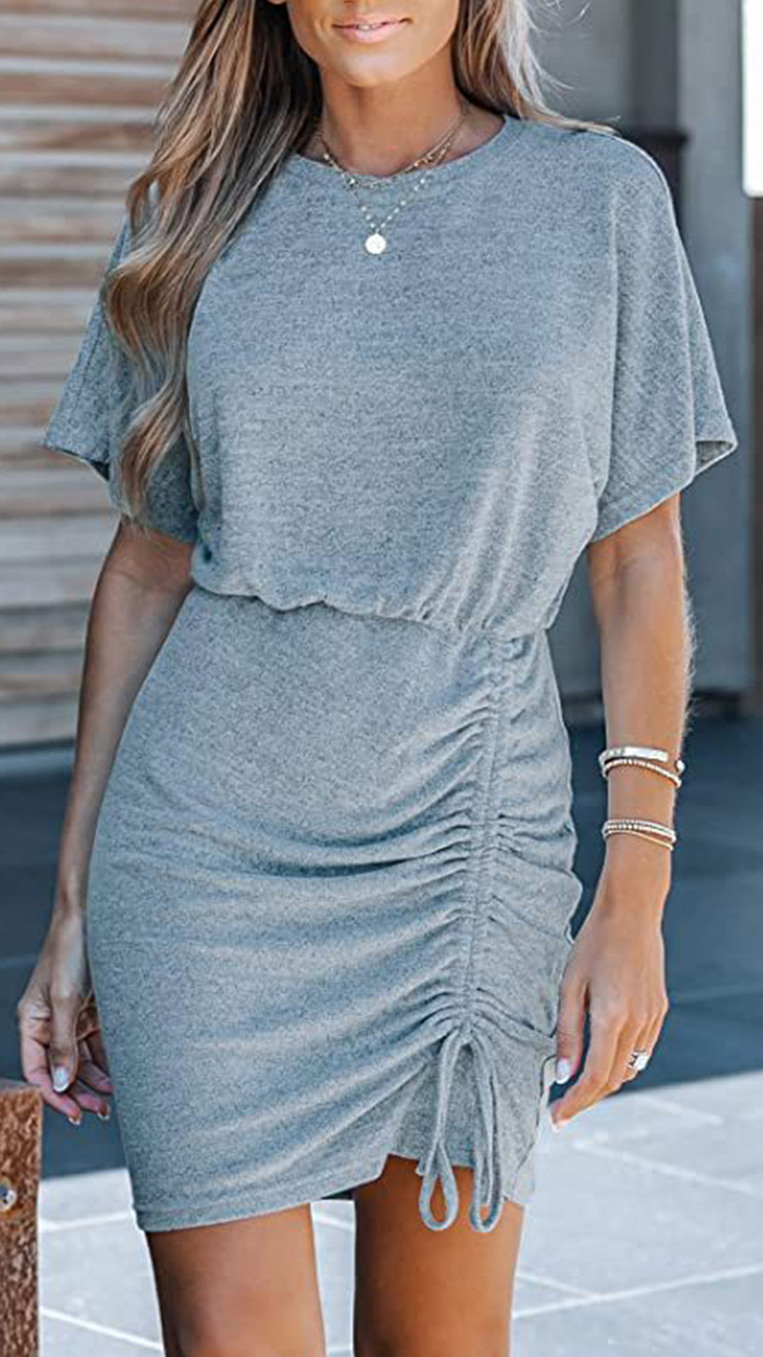 Street Fashion Solid Color Round Neck Short Sleeve Drawstring Mini Dress