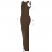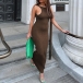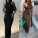 Street Fashion Solid Color Round Neck Sleeveless Bodycon Ribbed Midi Dress