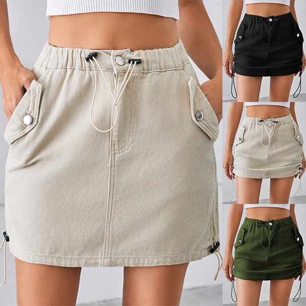 jupe courte élastique avec cordon de serrage latéral, couleur unie, tendance streetwear