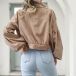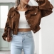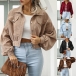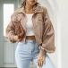 Street Fashion Solid Color Stand Collar Lantern Sleeve Crop Corduroy Jacket