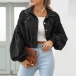 Look at this crop jacket! The lantern sleeves provide a unique and eye-catching element to the overall look, adding volume and movement. Perfect for casual outings or a night out with friends!