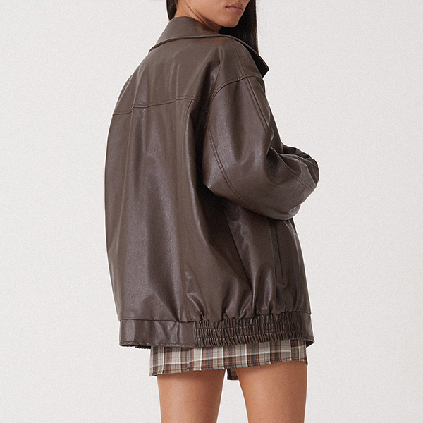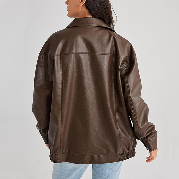 Street Fashion Solid Color Stand Collar Long Sleeve Artificial Leather PU Jacket for Women